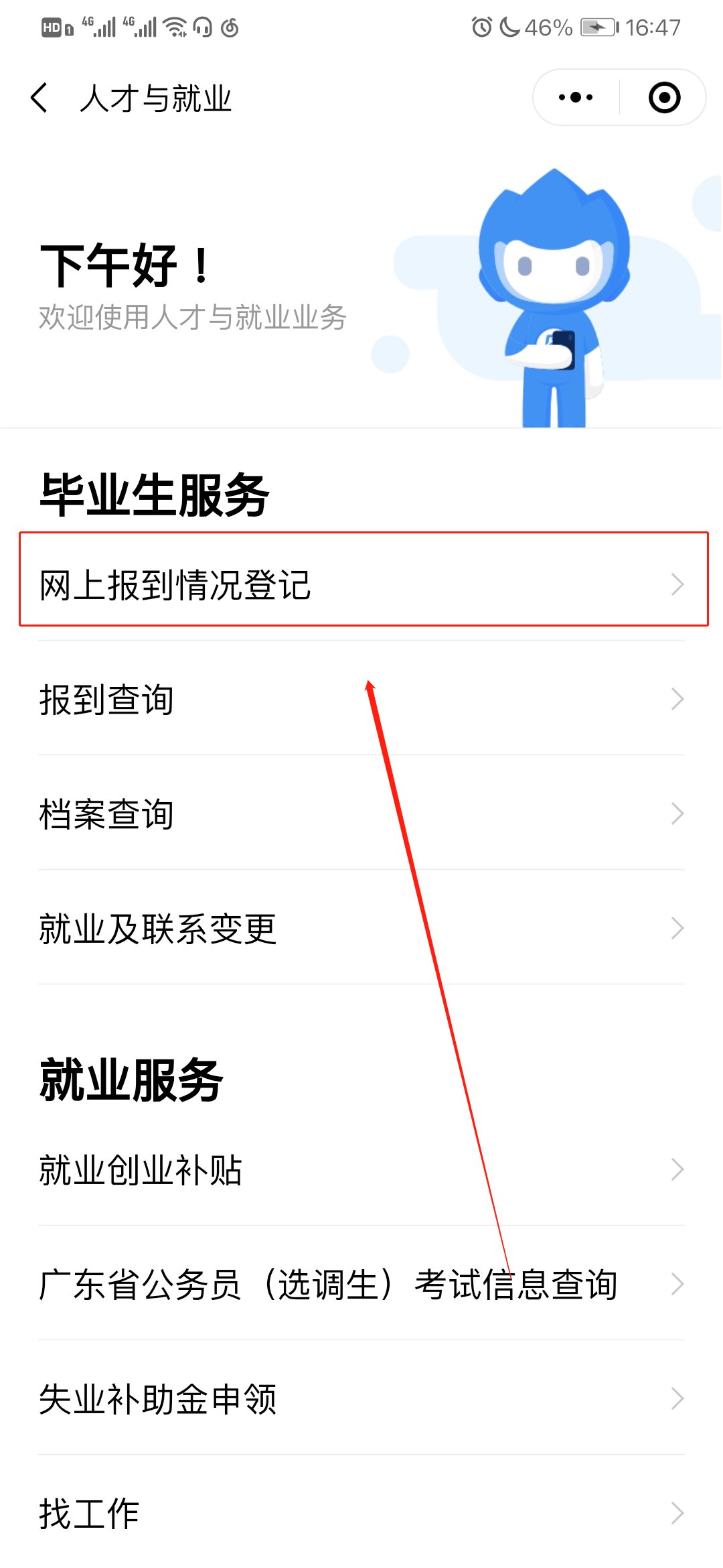 (1)登录广东省高校毕业生网上报到系统(https://ggfw.gdhrss.gov.cn/ldryh/),按要求进行网上报到。