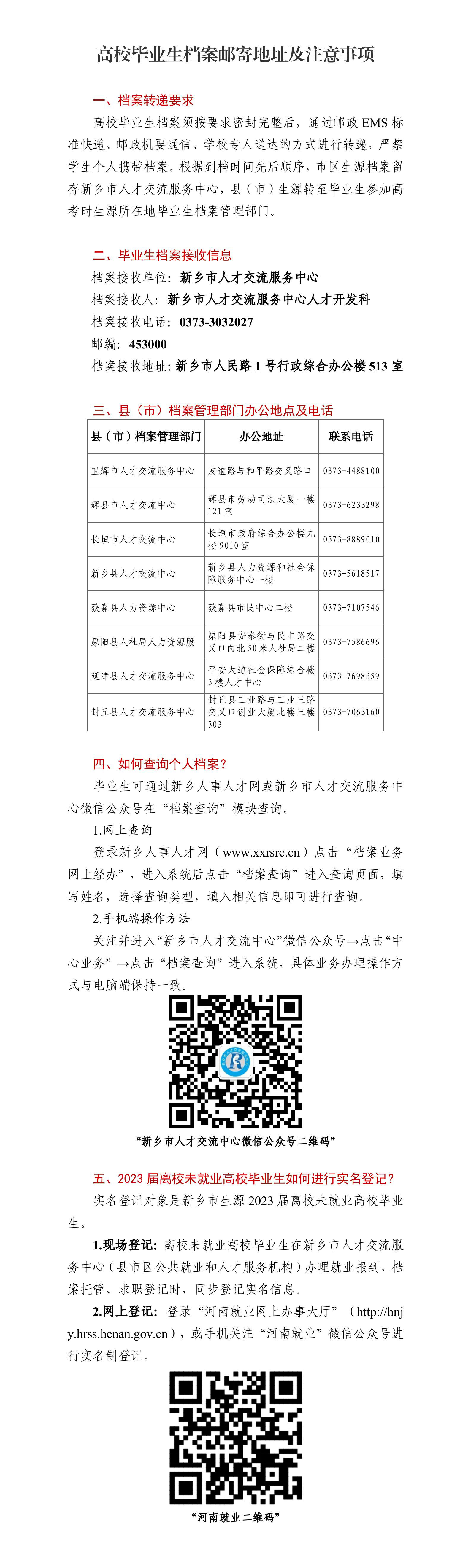毕业生可通过新乡人事人才网或新乡市人才交流服务中心微信公众号在“档案查询”模块查询。