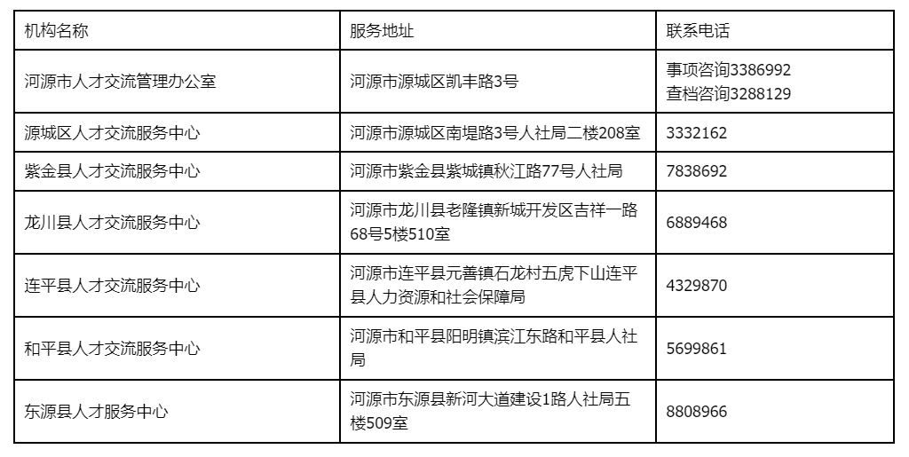 三、河源市人才服务机构