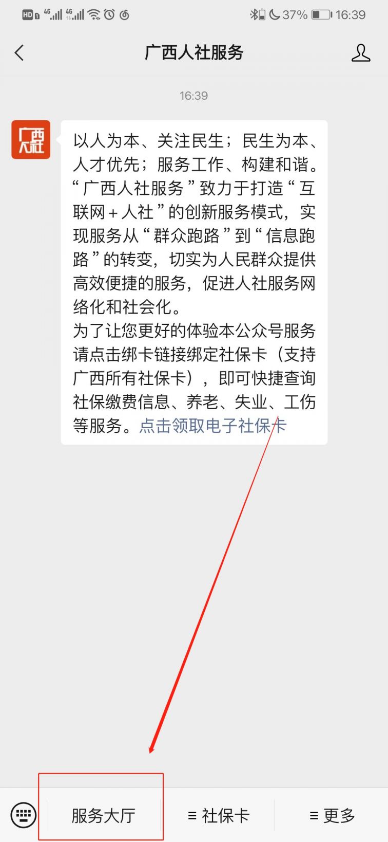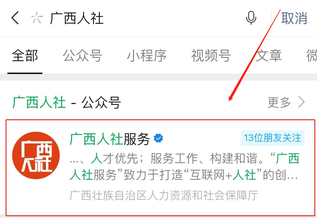 1.使用微信搜一搜搜索“广西人社”,并关注“广西人社服务”微信公众号;