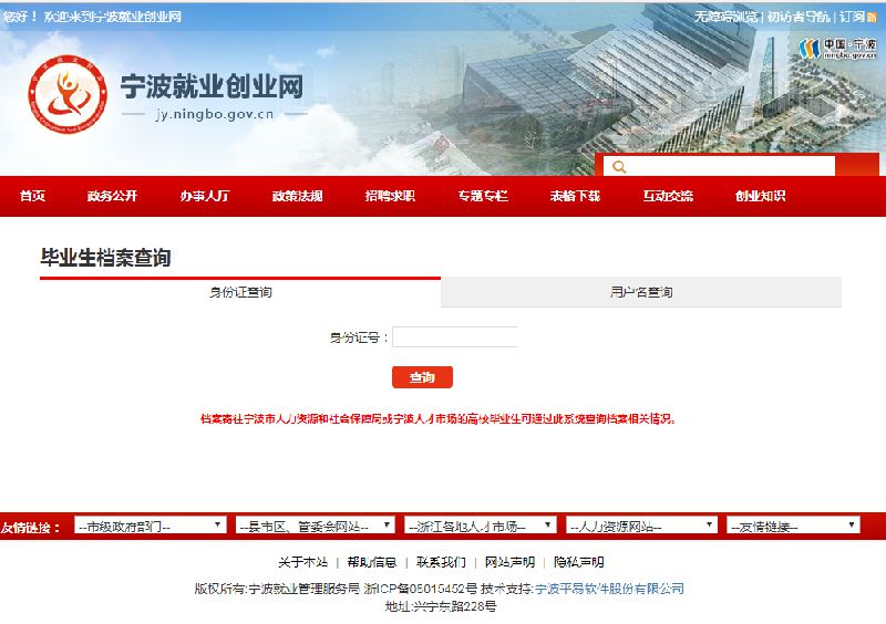 1、毕业生可以登陆宁波就业创业网(http://www.nbjy.org.cn/)查询到档情况。