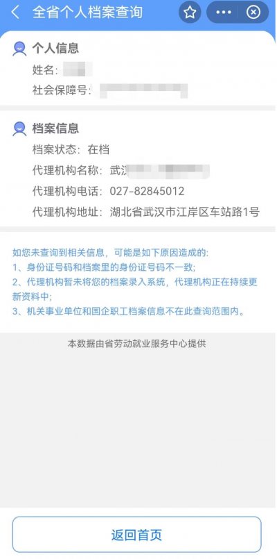 5、然后就可以看到个人档案在哪里、档案状态、咨询电话等