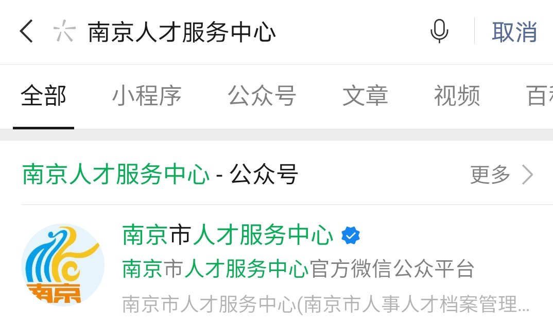 2、通过“南京市人才服务中心”微信公众号