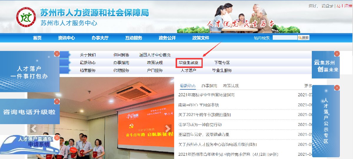 1、“苏州市人才服务中心”官网(http://hrss.suzhou.gov.cn/szrczx/)