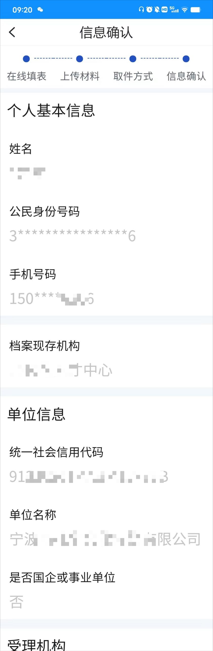 信息确认,核对个人基本信息无误,点击“提交”,等待审核。