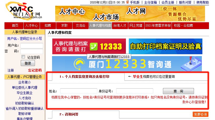 厦门毕业生个人档案查询系统官方入口,厦门人事档案查询电话
