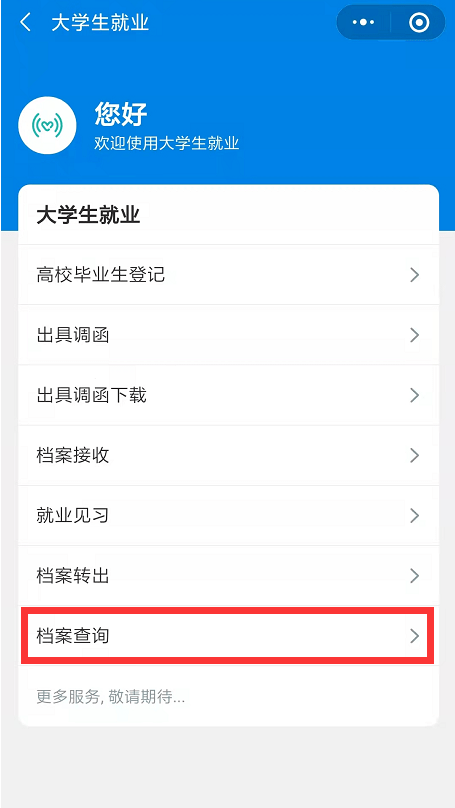 “服务”-“大学生就业”-“更多”-“档案查询”。