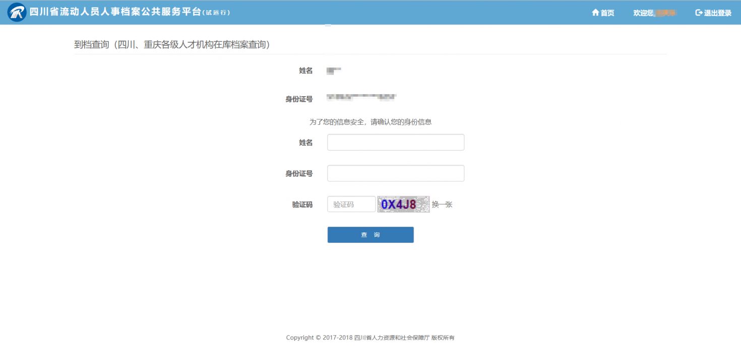 在四川省流动人员人事档案中输入姓名和身份证号查询