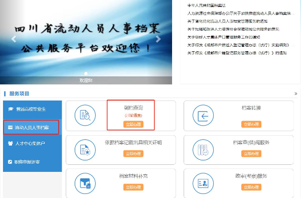 2、网上办理:可通过网站点击获取,即四川省流动人员人事档案公共服务平台“档案转接”页面申请调档,由档案室进行审核,对符合转出条件的在系统中做档案转出处理。