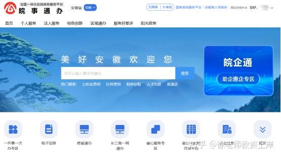 第一步、网页搜索“安徽政务服务网”并登入,如下图: