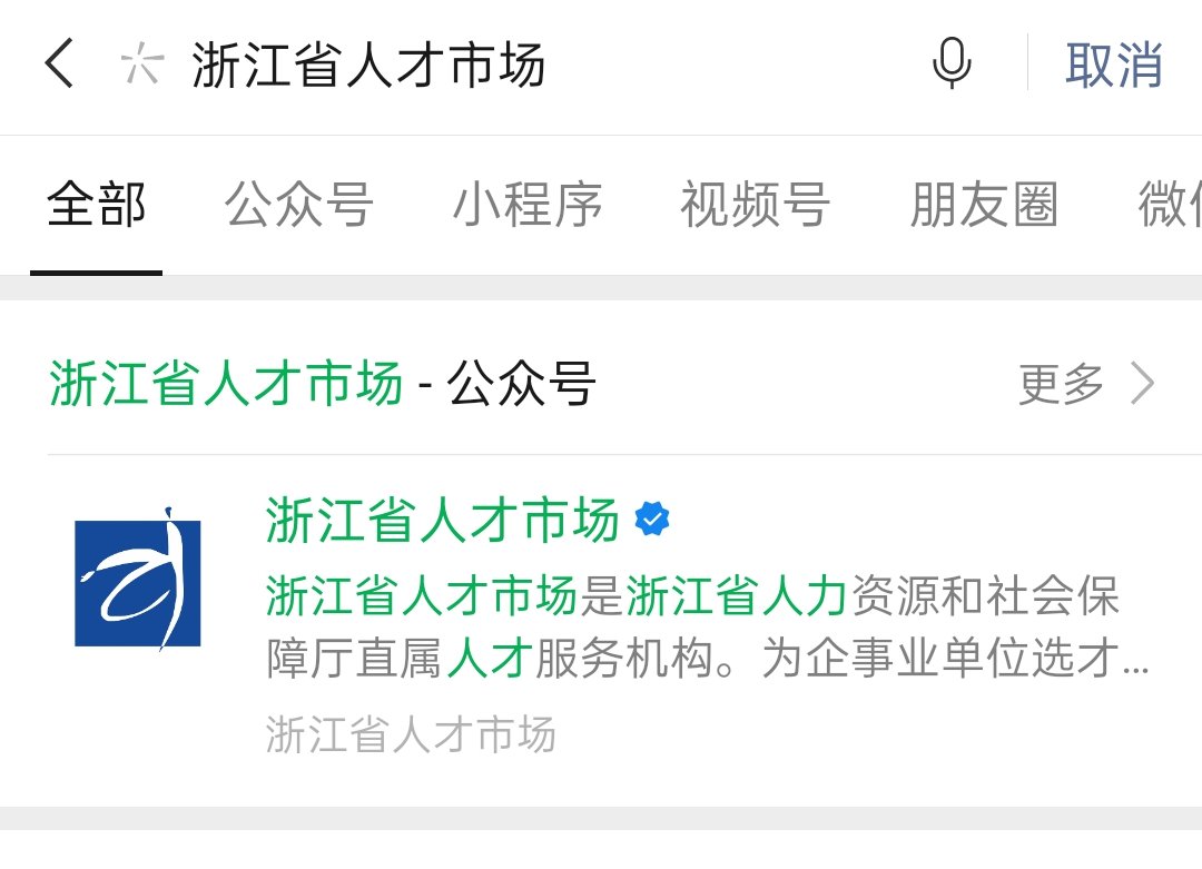 1.微信搜索“浙江省人才市场”公众号并关注;