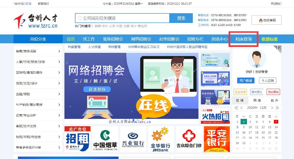 进入官网后点击首页的“网上查档”,接着按照提示进行登录查询即可。