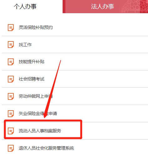 进入官网后,将页面下滑,找到“个人办事”栏,点击右侧的“更多”;接着在该栏下选择“流动人员人事档案服务”即可进入查询;
