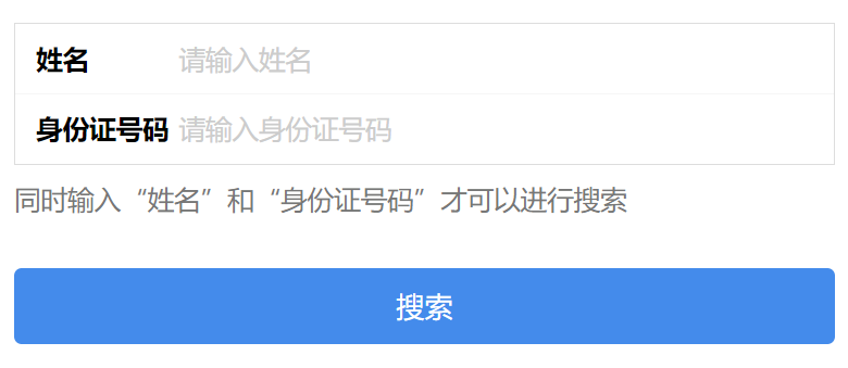 2、进入后输入姓名、身份证号,点击“搜索”即可,如下图所示: