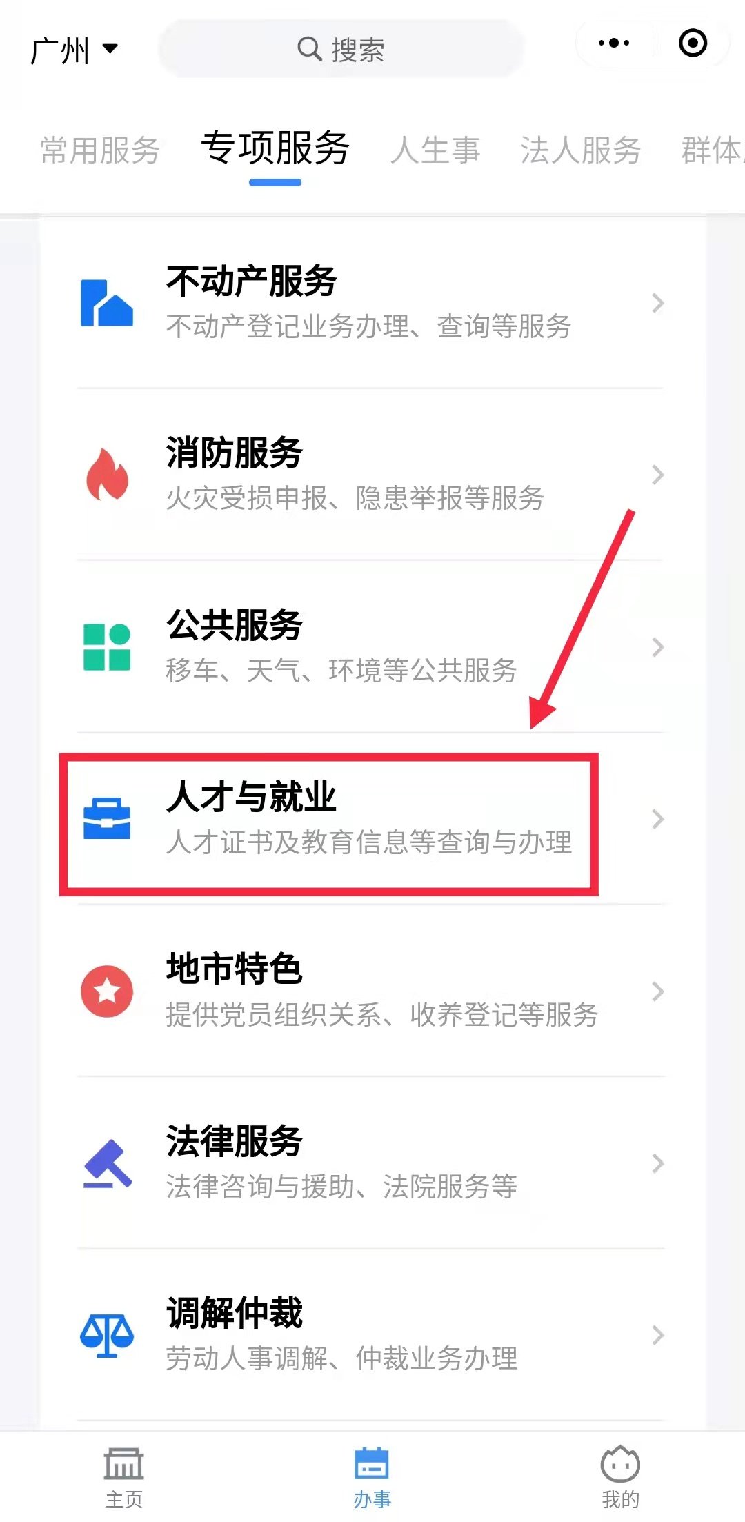 第2步:进入广东政务服务网(广州市)—我要预约—专业大厅—人社业务预约—南方人才毕业生工作部—高校毕业生档案服务—办理业务时间,进行预约;