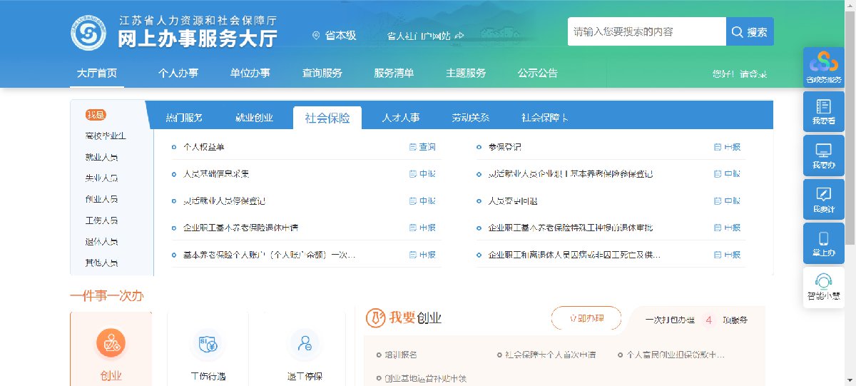 “江苏省人力资源和社会保障厅网上办事服务大厅”入口:https://rs.jshrss.jiangsu.gov.cn