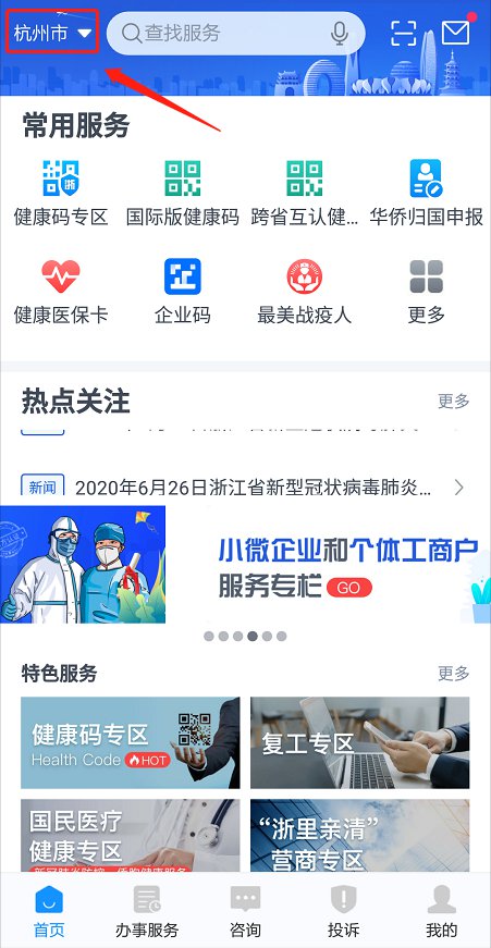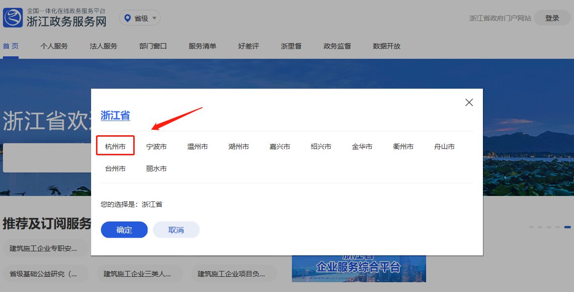 1、进入浙江政务服务网,选择“杭州市”